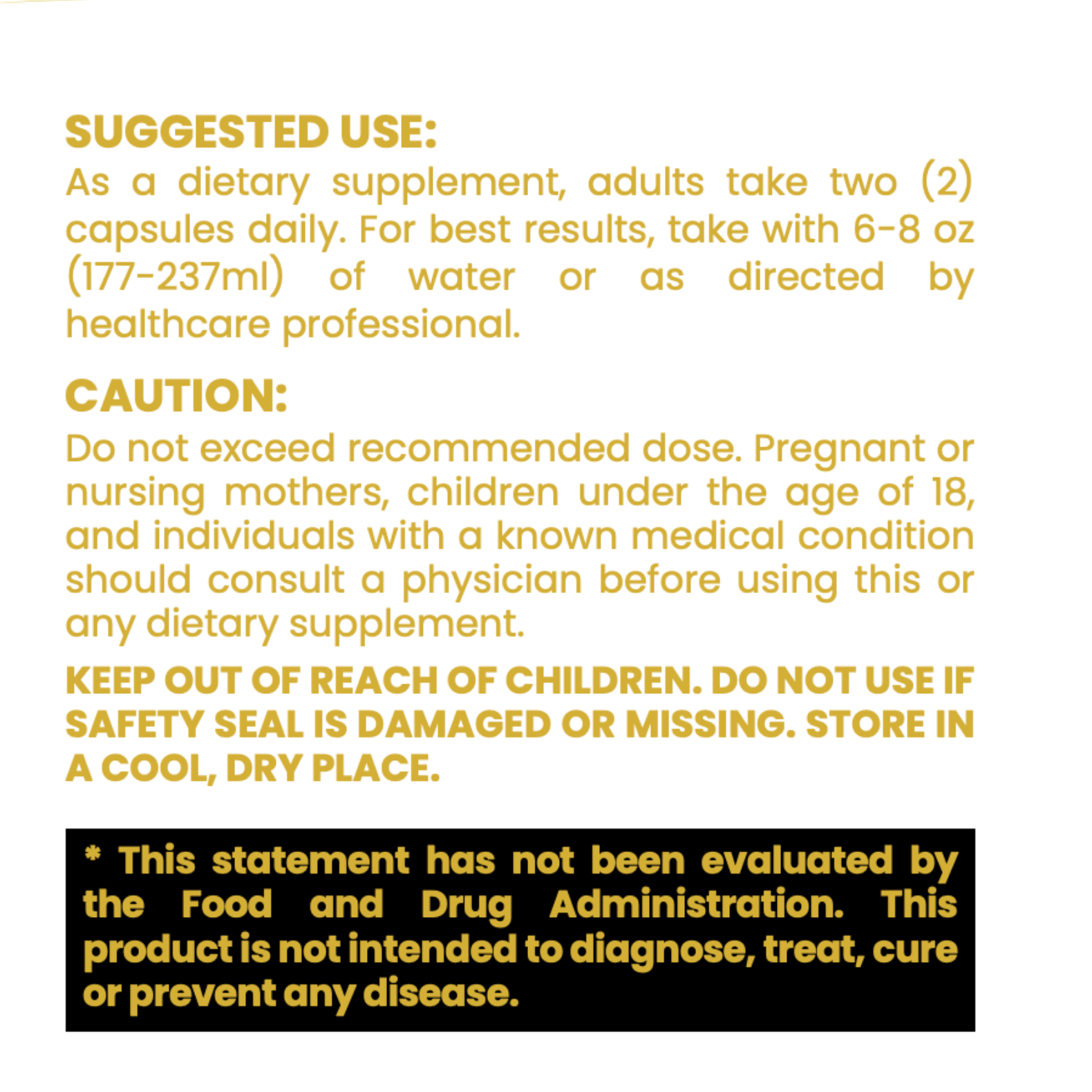 For suggested use as a dietary supplement, adults take two (2) capsules daily. For best results, take with 6-8 oz of water or as directed by healthcare professional.*